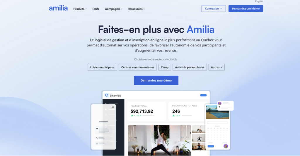 Amilia est une plateforme canadienne bien connue pour la gestion des activités sportives, des camps et des cours. Elle propose une solution robuste mais qui ne convient pas toujours aux municipalités.