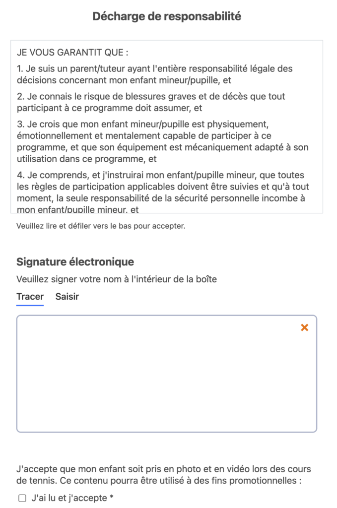 Avec Activity Messenger, ces documents peuvent être intégrés directement à vos formulaires d’inscription, dans une section dédiée. Les citoyens peuvent ainsi les remplir et les signer numériquement dès l’inscription. Toutes les informations sont centralisées automatiquement, sans gestion papier ni suivi manuel, ce qui simplifie considérablement le travail de votre équipe municipale et fluidifie le processus d’inscription pour vos citoyens.