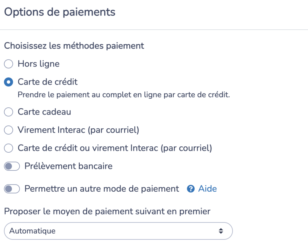 ✅ Le paiement en ligne (Interac, carte de crédit) ou en direct