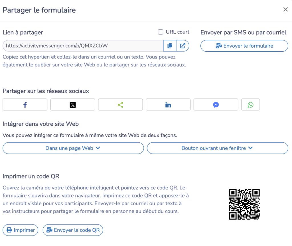 Une fois votre formulaire prêt, il est temps de le partager efficacement avec votre communauté. Avec Activity Messenger, plusieurs options s’offrent à vous :