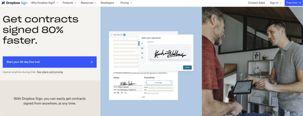 Dropbox Sign est une solution de signature électronique simple et sécurisée, intégrée à Google Workspace et à Dropbox. Elle permet de faire signer des documents PDF rapidement, ce qui peut convenir à des besoins ponctuels. Cependant, cette plateforme n’est pas conçue pour la gestion d’activités municipales. Elle ne permet pas de créer de formulaires dynamiques, ni de lier automatiquement l’envoi d’une décharge à une inscription en ligne. Cela signifie que chaque formulaire doit être préparé et envoyé manuellement, ce qui devient rapidement contraignant.