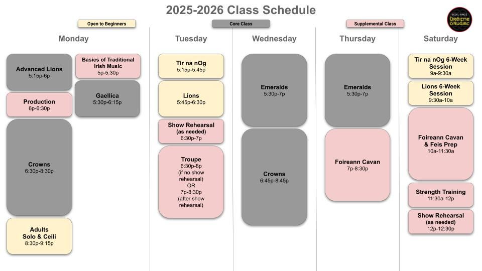 The Feis Prep class is offered for dancers who want to support their solo dance training for competitions in September-December 2025 (Fall Session) and January-May 2026 (Spring Session). Dancers in this class will receive instruction in goal-setting and developing a training plan, in addition to feis practice class and strength training class.