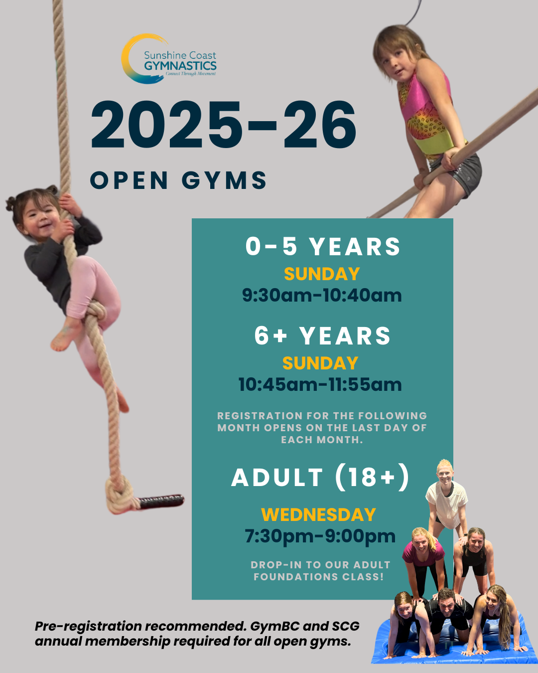 Open Gym for ages 6+ will resume in January 2026.
