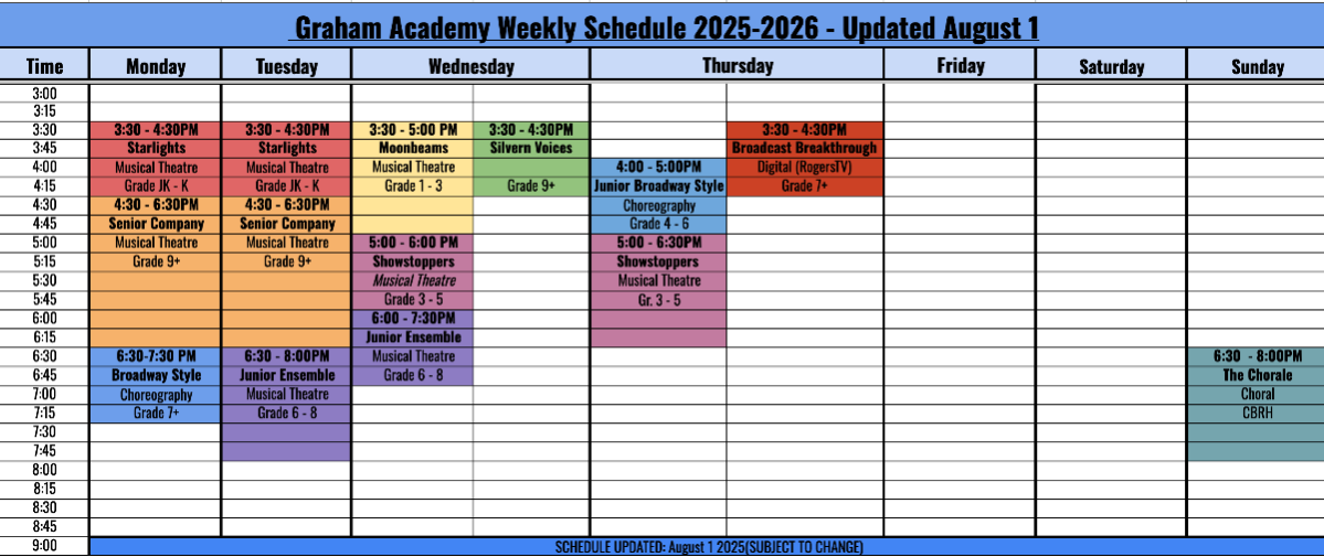 A downloadable PDF version of the weekly schedule is available at Graham Academy Weekly Schedule 2025-26.xlsx - GROUP PROGRAMS