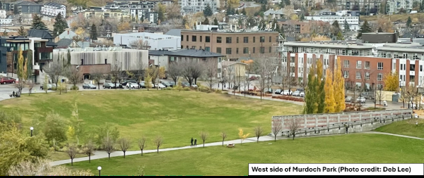 - Upgrades to the northwest corner of Murdoch Park, including more seating, improved lighting, new vegetation, and potential public art or gardens.