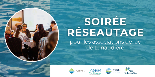 Le RAPPEL, AGIR Maskinongé, Bassin Versant Saint-Maurice, et OBV L'Assomption invitent les associations de protection de lac de Lanaudière à se rassembler pour une soirée réseautage.