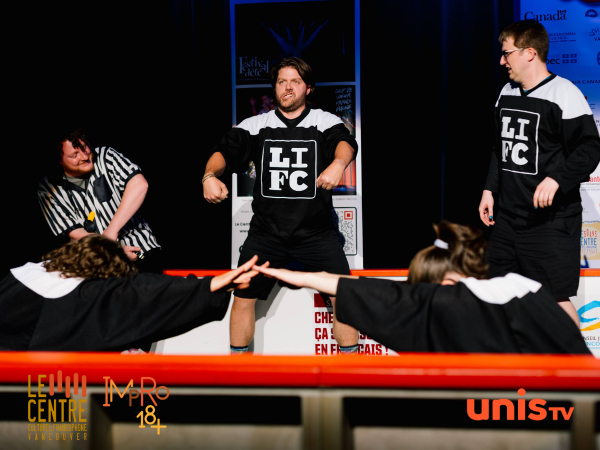 Un match d’improvisation est un spectacle où deux équipes s’affrontent en créant des scènes spontanées devant un public, et il est important que les participant·e·s soient à l’aise de jouer sur scène en direct.