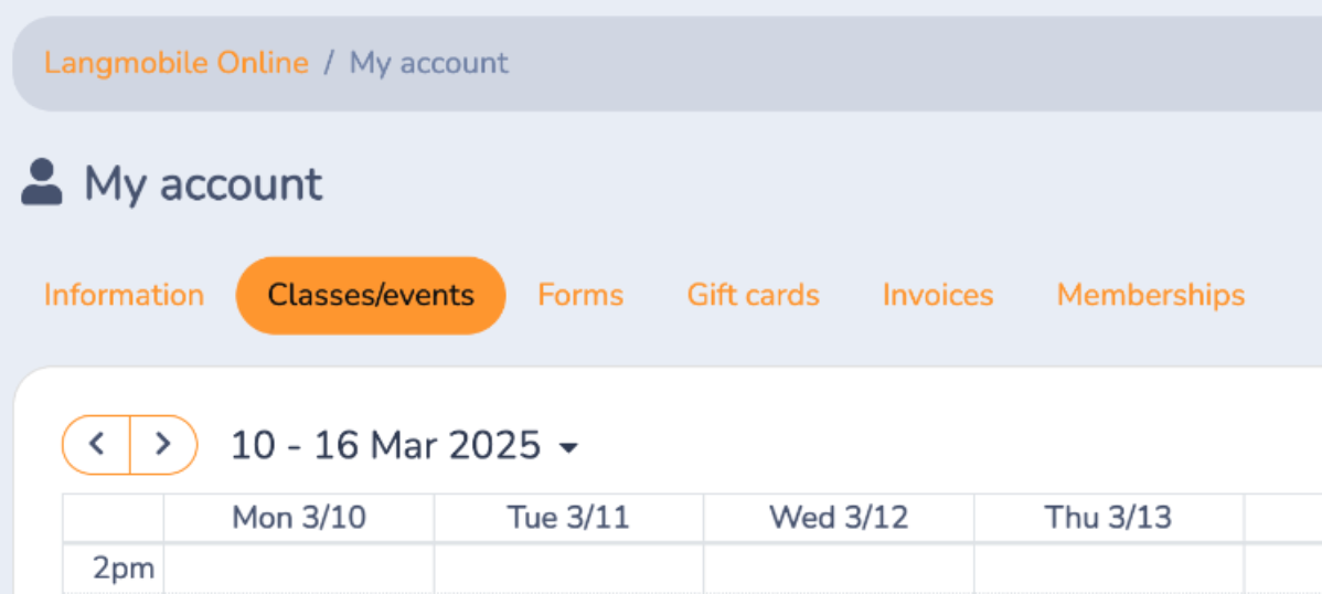 2. Select "Classes/Events" from the menu