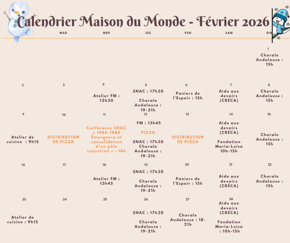 Retrouvez toutes les activités proposées par la Maison du Monde pour le mois de février 2026 !