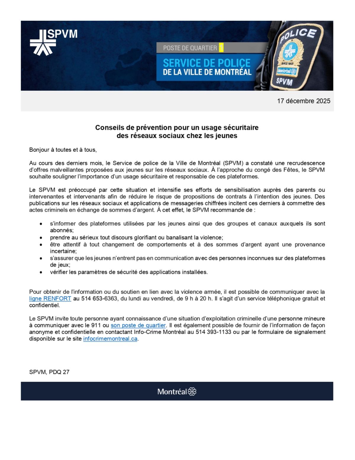 Prévention sur l’usage sécuritaire des réseaux sociaux