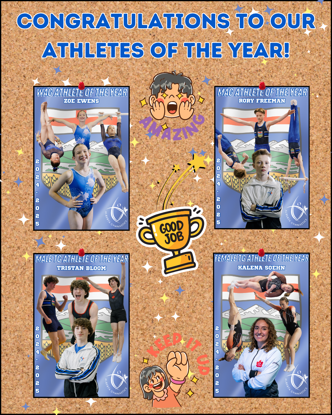 We are immensely proud of every one of you and canβt wait to see what you accomplish in the future. At AGF, we believe the sky is truly the limit! π β¨TG Male Athlete of the Year - Tristan Bloom β¨WAG Athlete of the Year - Zoe Ewens (2nd season in a row) β¨MAG Athlete of the Year - Rory Freeman β¨TG Female Athlete of the Year - Kalena Soehn (2nd season in a row)