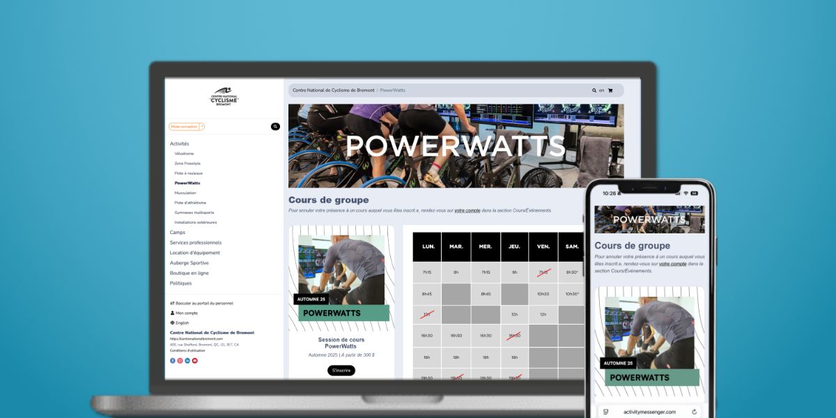 CLIENTS POWERWATTS LE PETIT GUIDE D'UTILISATION DU NOUVEAU MICROSITEPour bien vous aider à naviguer sur notre nouvelle plateforme Activity Messenger, nous vous avons rassemblé quelques informations et conseils afin de gérer facilement vos séances de cours. Découvrez comment accéder au microsite, annuler un cours et reprendre un cours.
