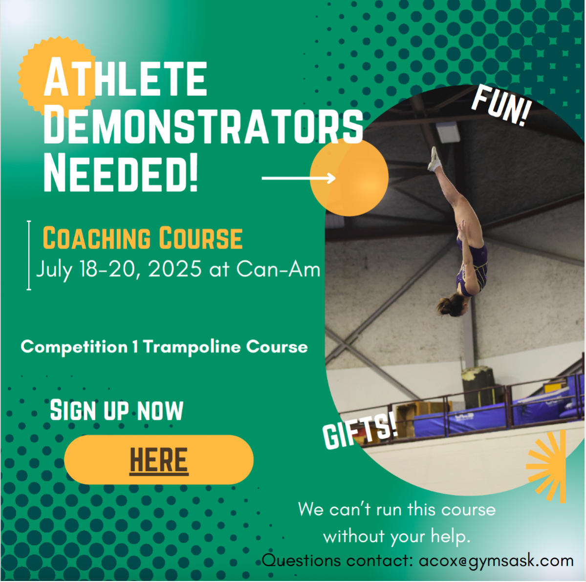 TO: Member ClubsRE: Call for DemonstratorsWe are looking for athlete demonstrators for the upcoming Competition 1 TG coaching course in Saskatoon! The course will take place July 18-20 and we are looking for demonstrators for all three days. Please share the following link with TG athletes in your gym. https://activitymessenger.com/p/t92tYE3 Regards, Adeena Cox, BSRS PROGRAM MANAGER, SHE/HER 306-780-9229 300-1734 Elphinstone Street | Regina SK | S4T 1K1 INSPIRE AND EMPOWER CHAMPIONS IN SPORT AND LIFE